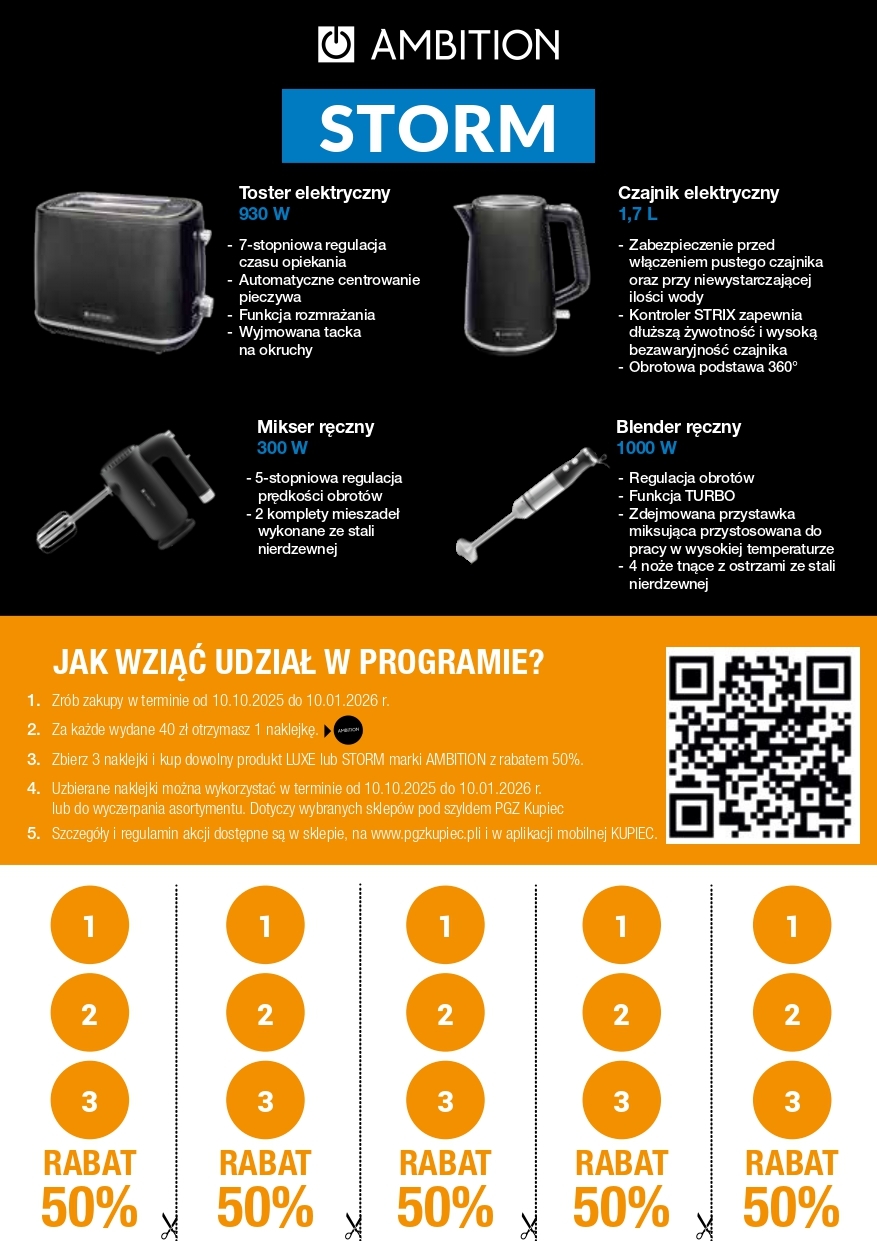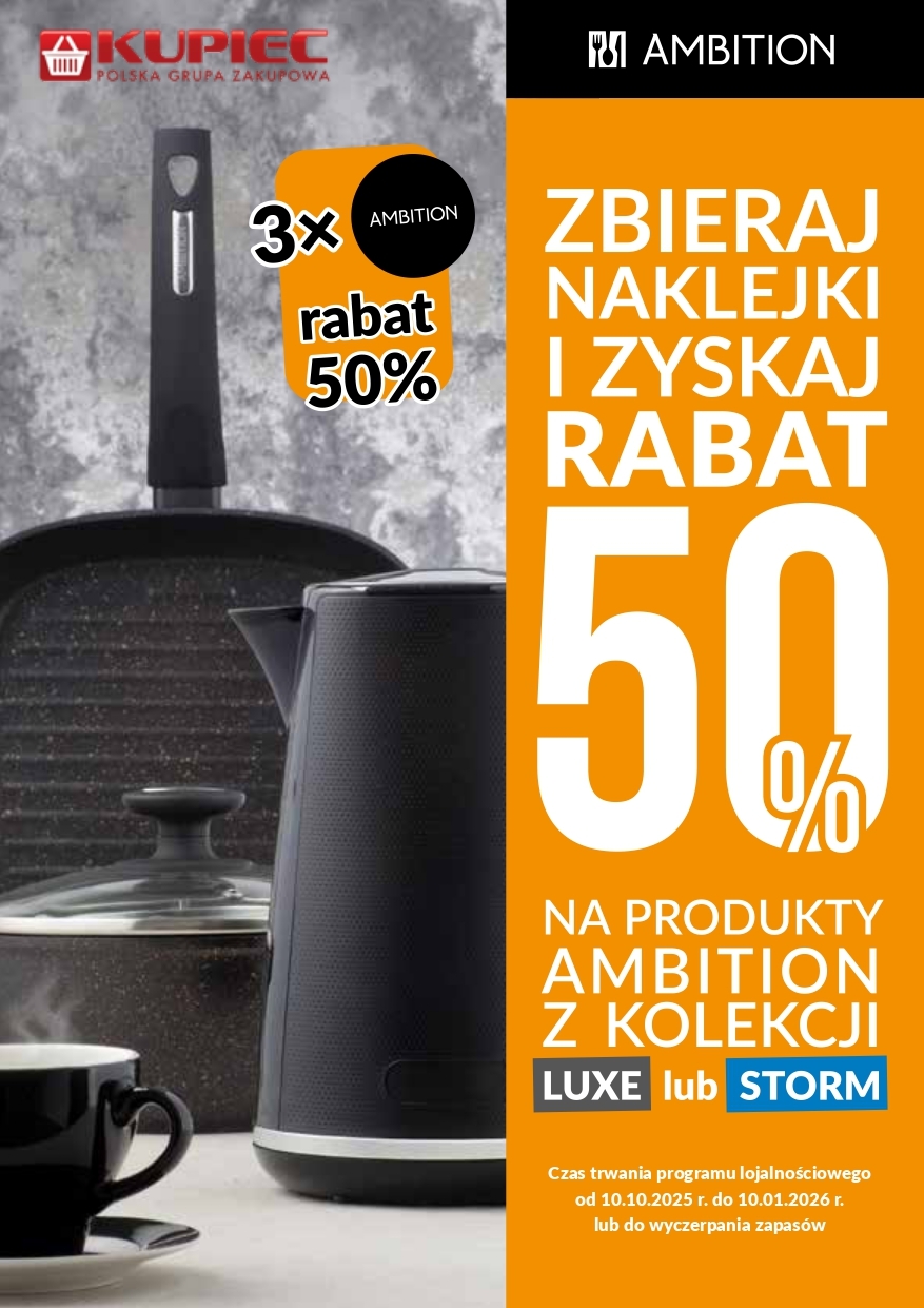 3. Zbierz 3 naklejek i kup produkt marki AMBITION z rabatem 50%.